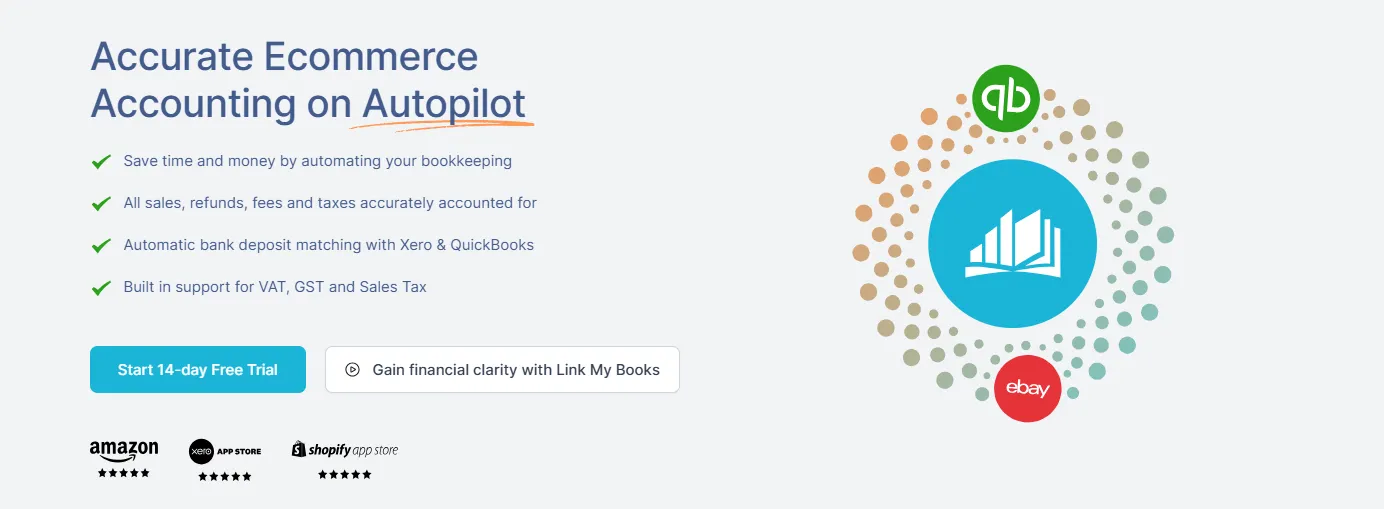 - Xero: The Xero App Store entry shows it automates e-commerce bookkeeping for Amazon, eBay, Shopify, etc.