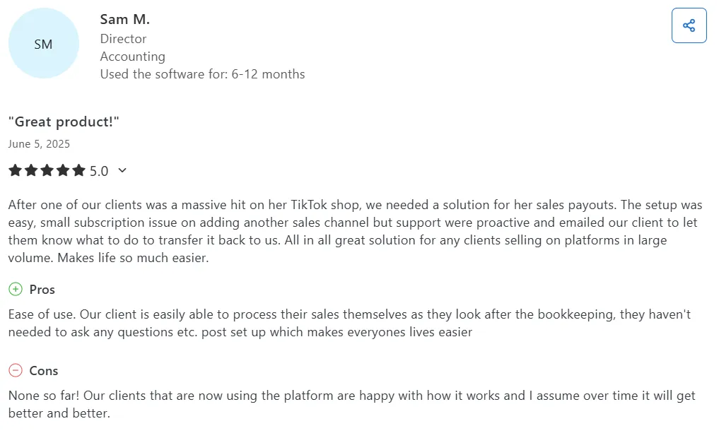 Link My Books is especially well-suited to UK and EU sellers that need VAT compliance and cost-effective automation across multiple sales channels. Its order-based pricing and accountant-backed support make it attractive for small and mid-sized businesses that want simplicity without the per-channel cost of tools like A2X.
