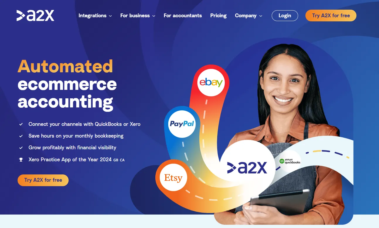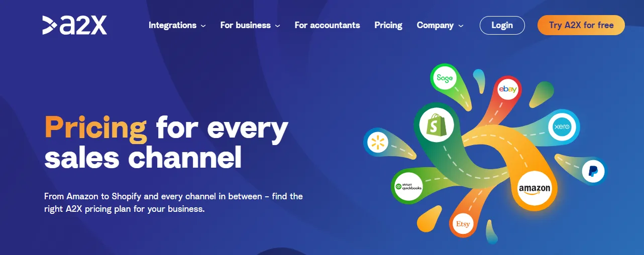 - A2X: Works with Shopify, Amazon, eBay, Etsy, Walmart, and BigCommerce. On the accounting side, it integrates with QuickBooks, Xero, Sage, and NetSuite, making it useful for larger firms with varied clients.