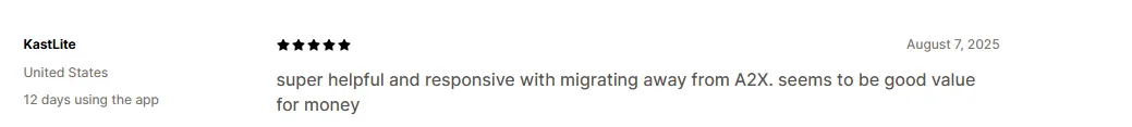 Customer support is one of the most frequently praised aspects of A2X.