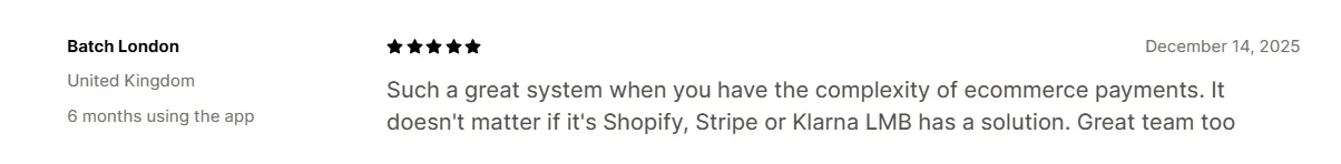 - Payment processor coverage includes Shopify Payments, PayPal, and others.