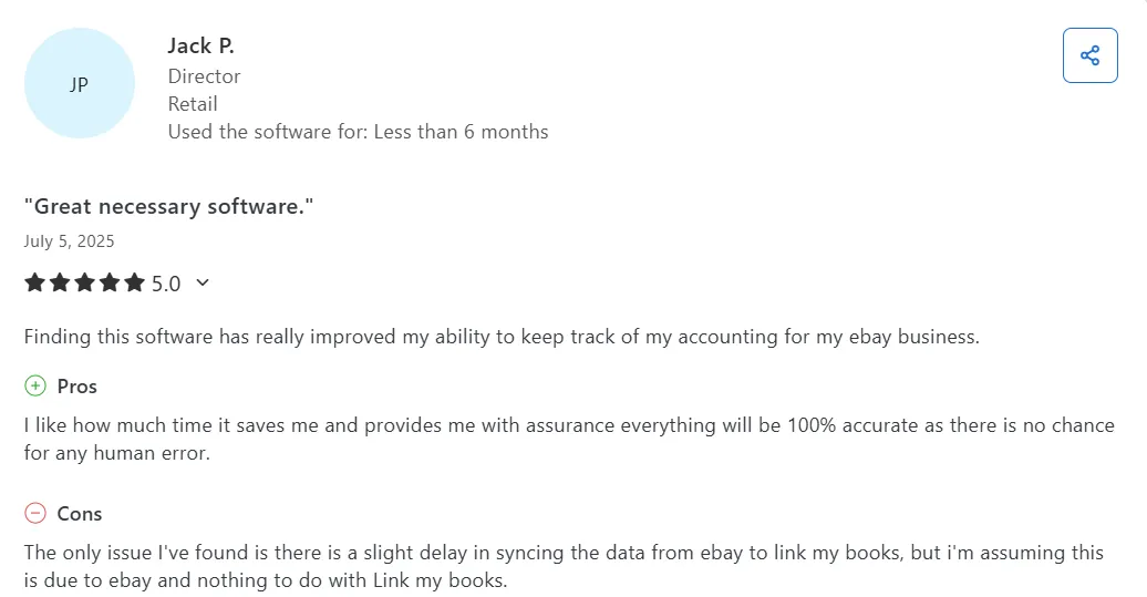 That’s exactly what Link My Books automates - importing each field directly from eBay, mapping taxes correctly, and posting a clean summary entry for every payout.