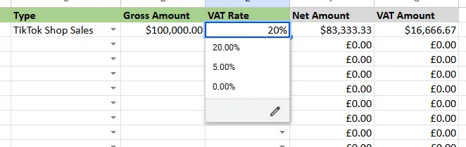 - VAT-registered sellers who need clarity: The sheet includes VAT rate options (20%, 5%, and 0%) so you can apply the right tax treatment without complicated formulas.