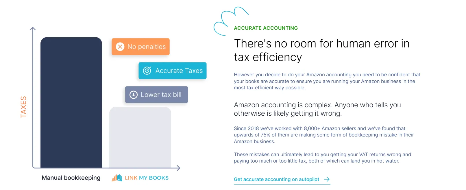 For full automation and VAT accuracy, Link My Books is the best solution among the best Amazon accounting software. It’s purpose-built for e-commerce, syncing Amazon sales, fees, and taxes directly into QuickBooks with one-click reconciliation.