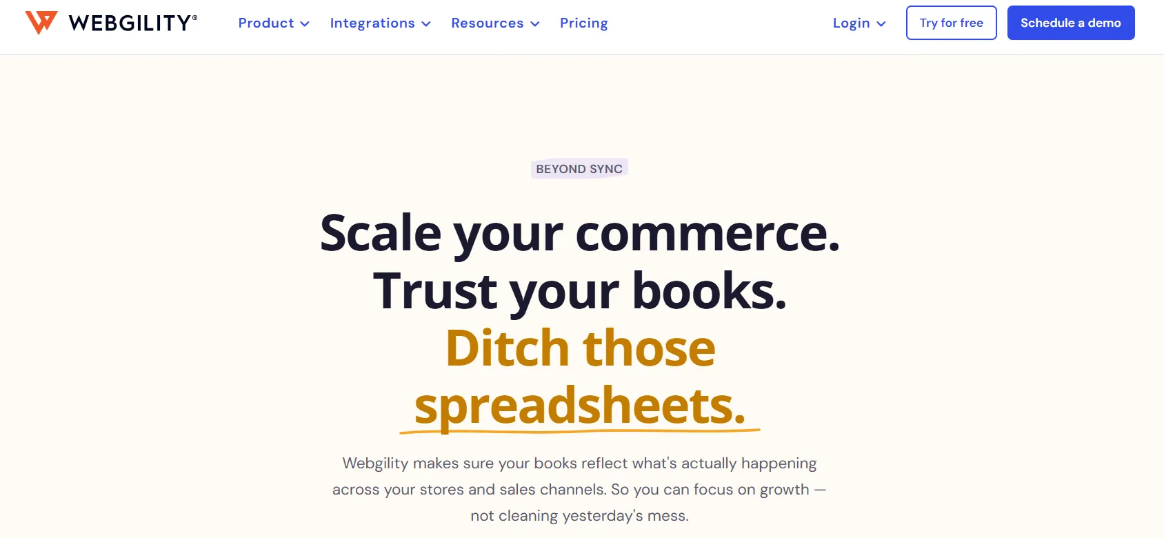 Webgility sits in a slightly different category. It is not just an accounting connector. It leans into broader ecommerce operations, including inventory, order workflows, and QuickBooks-heavy automation.