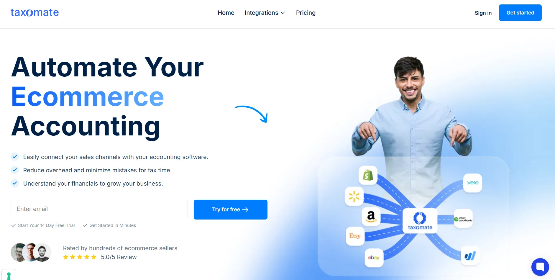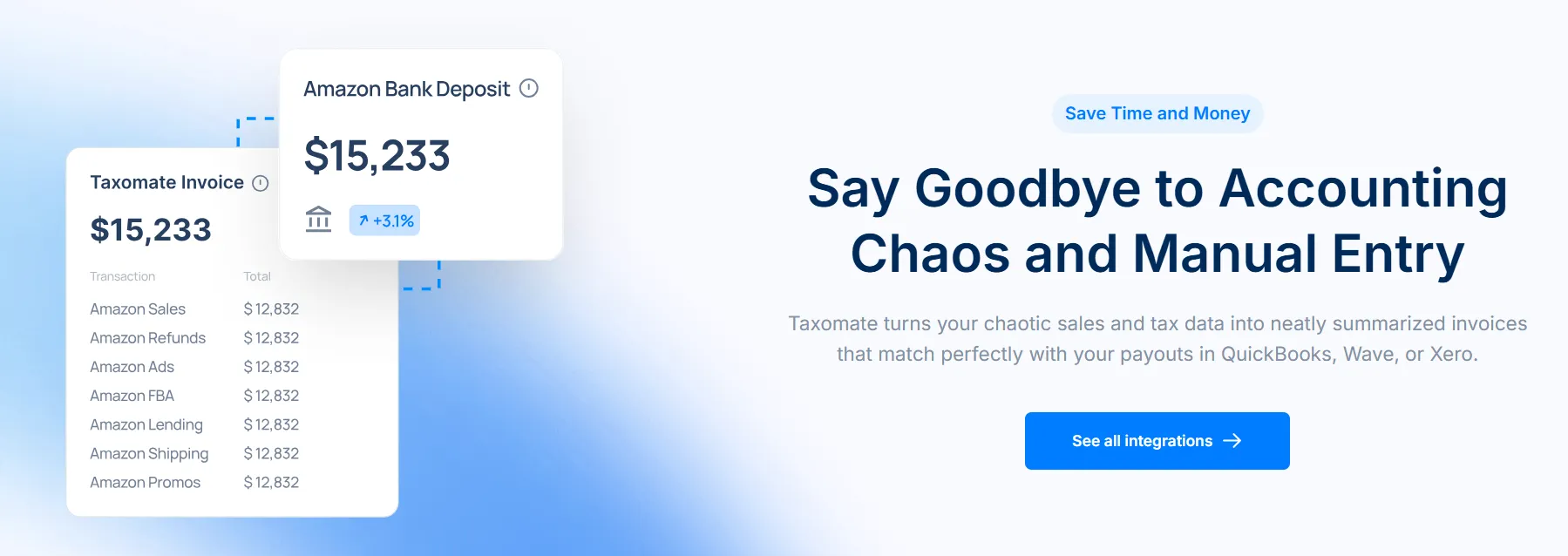 Taxomate is attractive for smaller sellers because the entry price is low and the feature set is practical. It supports Amazon, eBay, Shopify, Walmart, and Etsy, and it gives you a lighter path into ecommerce bookkeeping automation without enterprise-style pricing.